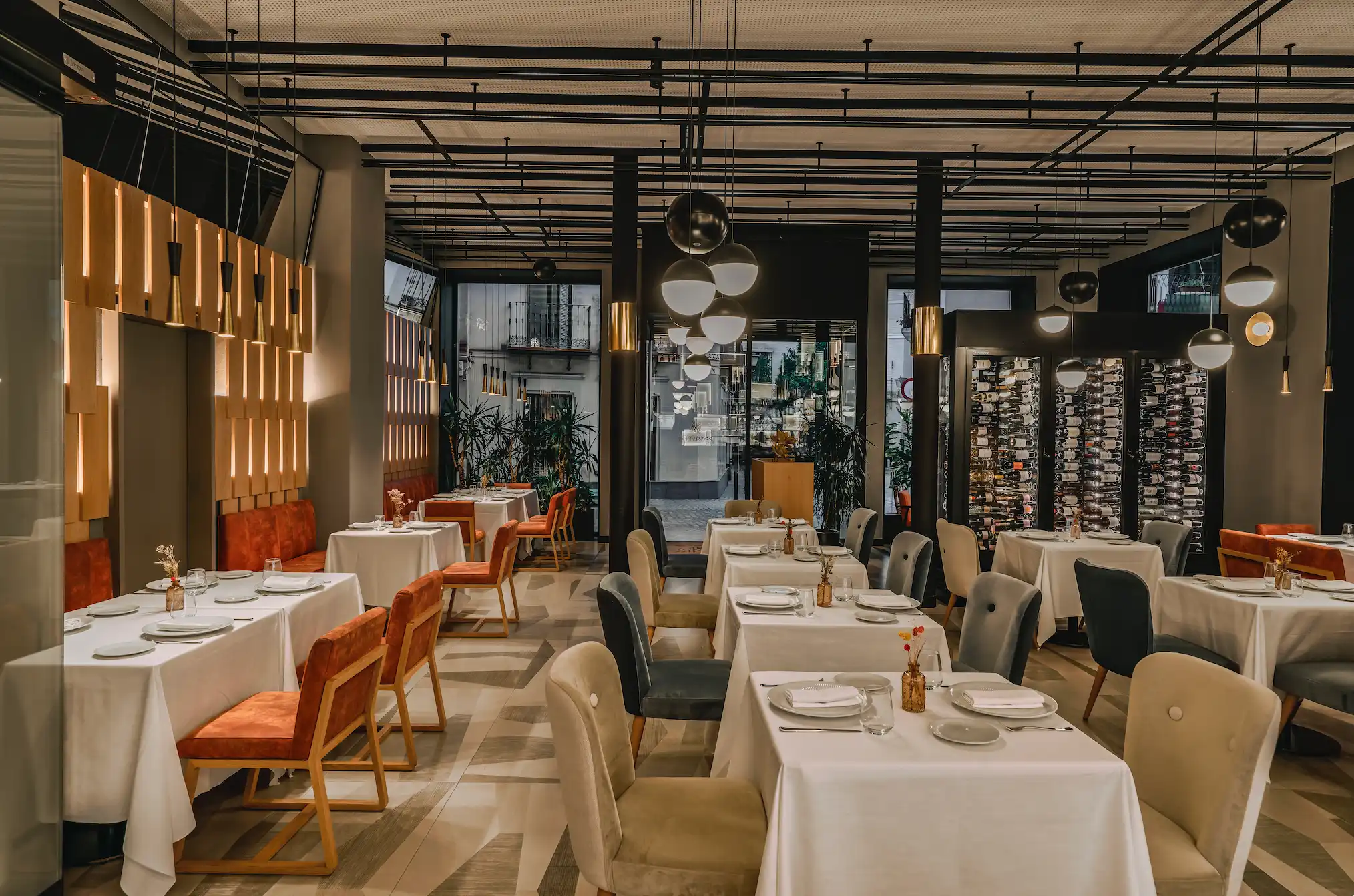 By the riverbank, the restaurant Kondutxo at Vincci Consulado de Bilbao 4* offers a menu that combines elegance, local ingredients and the welcoming atmosphere of its contemporary spaces.
