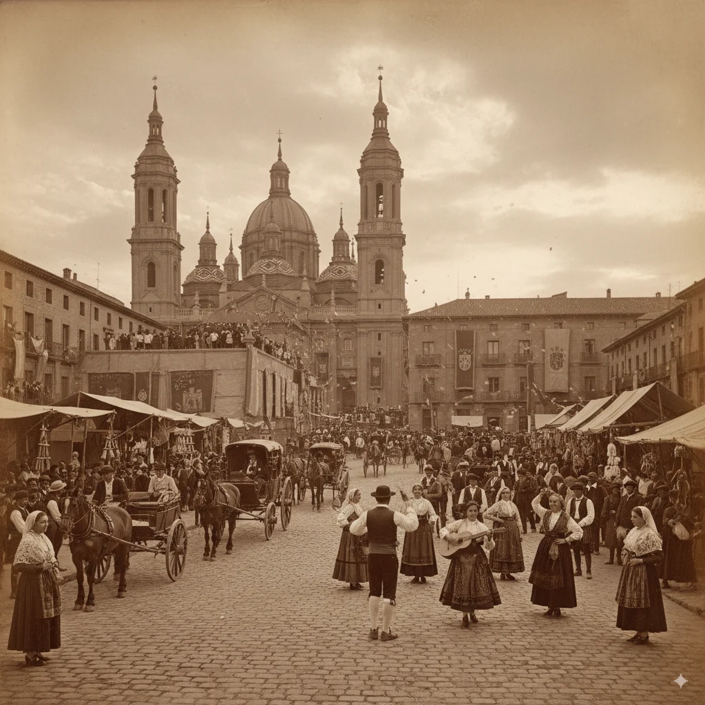 Las Fiestas del Pilar no siempre fueron como las conocemos hoy. Durante siglos se celebraban en otra fecha, el 2 de enero, hasta que en 1613 la Iglesia decidió trasladarlas al 12 de octubre, coincidiendo con el final de la cosecha. Poco a poco empezaron a ganar fuerza con procesiones, misas, festejos taurinos y, más tarde, con actos tan emblemáticos como el Rosario de Cristal (1891) o el Certamen Oficial de Jota (1894), que aún hoy siguen emocionando a quienes las viven.