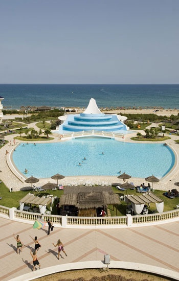Está ubicado frente a una playa paradisíaca donde el sol puede verse reflejado en sus aguas cristalinas. En Djerba, el desierto del Sahara da la mano al Mediterráneo; a la vez tan distintos y a la vez tan unidos. Son más de 9 hectáreas de hotel donde el estilo árabe se fusiona con la decoración actual.