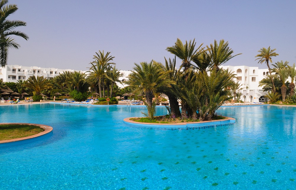 Báñate bajo el sol tunecino en la piscina del hotel Djerba Resort 4*. Un hotel donde disfrutarás de la isla de Djerba, de sus atardeceres, de su ambiente, del sol… En definitiva, de un marco incomparable.