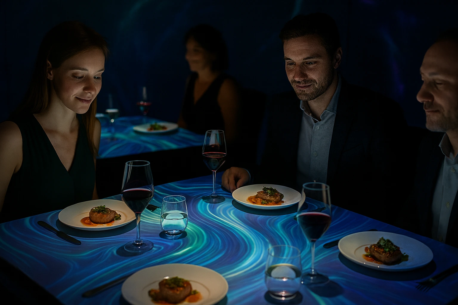 Hoy más que nunca toman fuerza los espacios que utilizan juegos de luces, pantallas envolventes o proyecciones en 3D para transformar el ambiente con cada plato. Otros sorprenden con aromas que se liberan en el momento exacto, texturas que cambian la percepción del sabor o sonidos diseñados para potenciar lo que estás probando. Incluso la inteligencia artificial se suma a esta tendencia, ajustando música, colores o intensidades de luz en tiempo real para crear una experiencia personalizada.