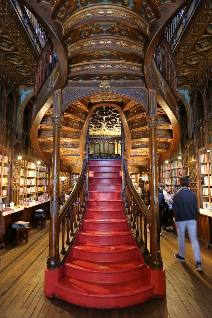 Escalera en el interior de la Librería Lello e Irmão, vía www.flickr.com
