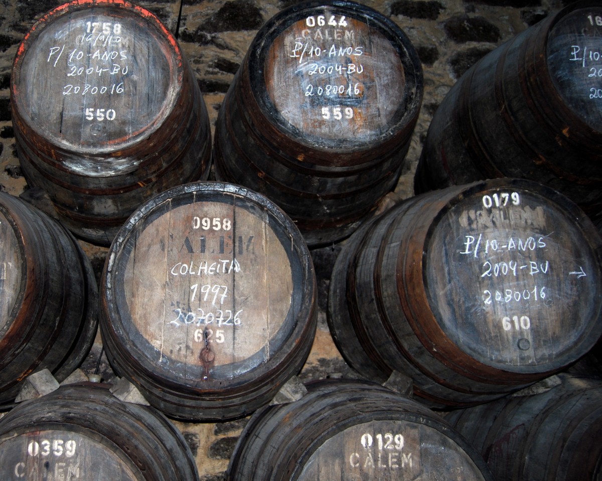 Barriles de vino de Oporto de la Bodega Calem en Gaia, Oporto, vía www.pxhere.com