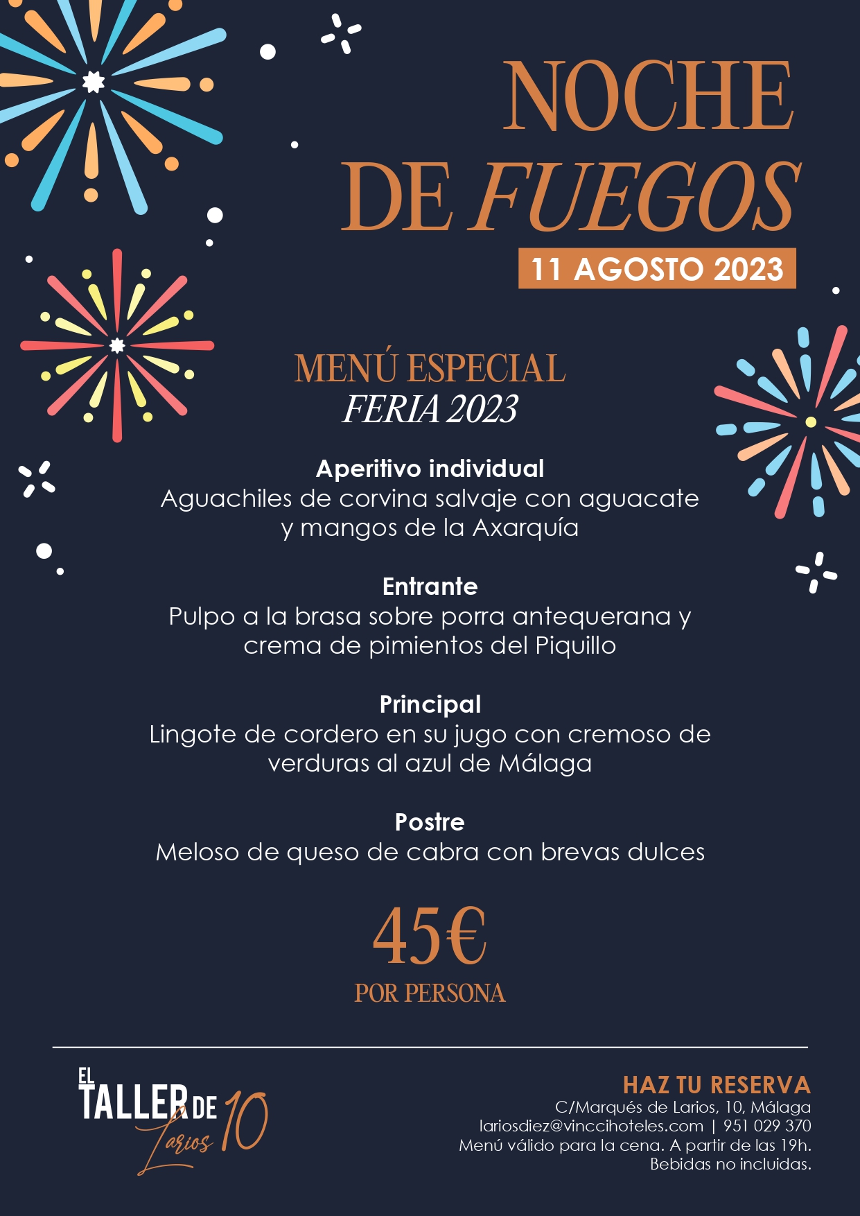 Menú especial “Noche de Fuegos” en el restaurante El Taller de Larios 10.