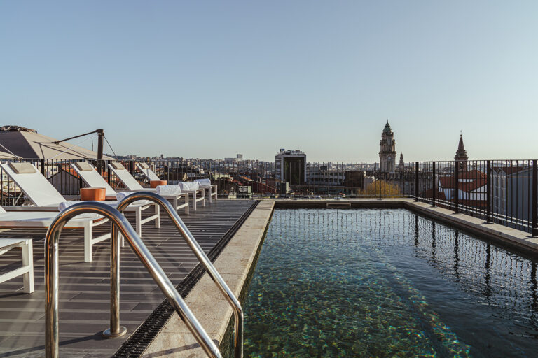 El recién estrenado alojamiento de Vincci Hoteles en Oporto, Vincci Bonjardim 4*, esconde en su quinta planta su terraza TERRAÇO DO JARDIM rooftop lounge, un lugar ideal para disfrutar de toda la belleza de esta ciudad portuguesa desde las alturas. Con grandes jardineras rebosantes de exuberante vegetación, esta azotea ofrece un ambiente acogedor que invita a relajarse y disfrutar. La piscina, el solárium y las cómodas tumbonas crean el escenario perfecto para refrescarse y desconectar mientras se contempla la panorámica de los principales puntos de interés turístico de la ciudad. Con una temática floral que aporta frescura y encanto, la terraza incluso cuenta con un pequeño rincón de venta de flores, permitiendo a los visitantes llevar consigo un recuerdo de la belleza de Oporto.