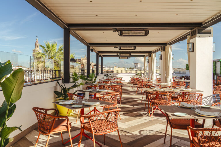 Para relajarse un poco y disfrutar del skyline sevillano, otra de las mejores opciones es la terraza de Vincci La Rábida 4*, “El Mirador de Sevilla”. Sevilla tiene un color especial, que se aprecia mejor desde las alturas y más desde esta azotea en la que se pueden ver sus edificios repletos de historia, sus árboles con tonalidades diferentes, al mismo tiempo que se siente la brisa que nace del Guadalquivir.Allí se pueden degustar cuidadas especialidades culinarias y los cócteles más refrescantes al mismo tiempo que se disfruta de unas inmejorables vistas a la catedral.
