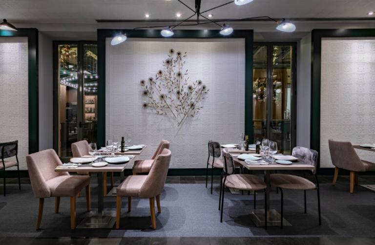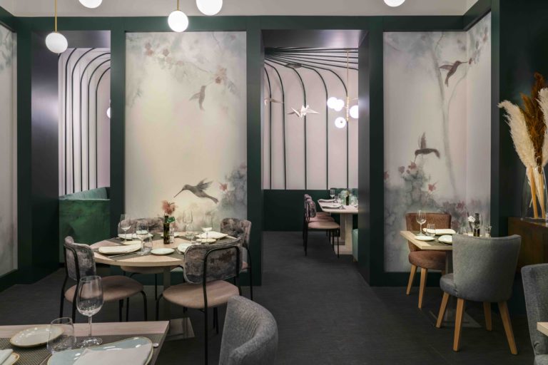 Los shows podrán verse tanto desde el restaurante como desde su terraza acristalada, dos entornos muy singulares que invitan al disfrute. En el restaurante, los tonos neutros, su iluminación en cada rincón y su paisaje fantástico con colibríes en un papel pintado en exclusiva, transportan a los comensales a un ambiente muy agradable; mientras que su terraza acristalada es un pequeño oasis en medio del bullicio del centro de la ciudad, está presidida por un gran carrousel, que es una barra de bar, y está enmarcada por vegetación otorgándole un carácter romántico y transformándola en un rincón en el que resulta muy fácil fantasear.