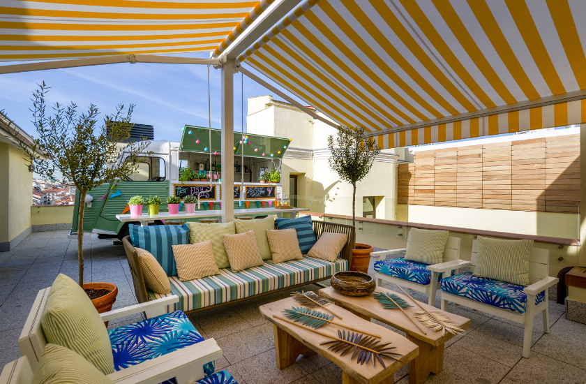 Terraza The Mint RooftopEn el número 10 deGran Vía, la terraza de Vincci The Mint 4* y su aroma a menta inundan de frescura el corazón madrileño convirtiéndola en el place to bede la temporada estival en la ciudad, con su inigualable ambiente colorido y fresh y su característico foodtruck.
